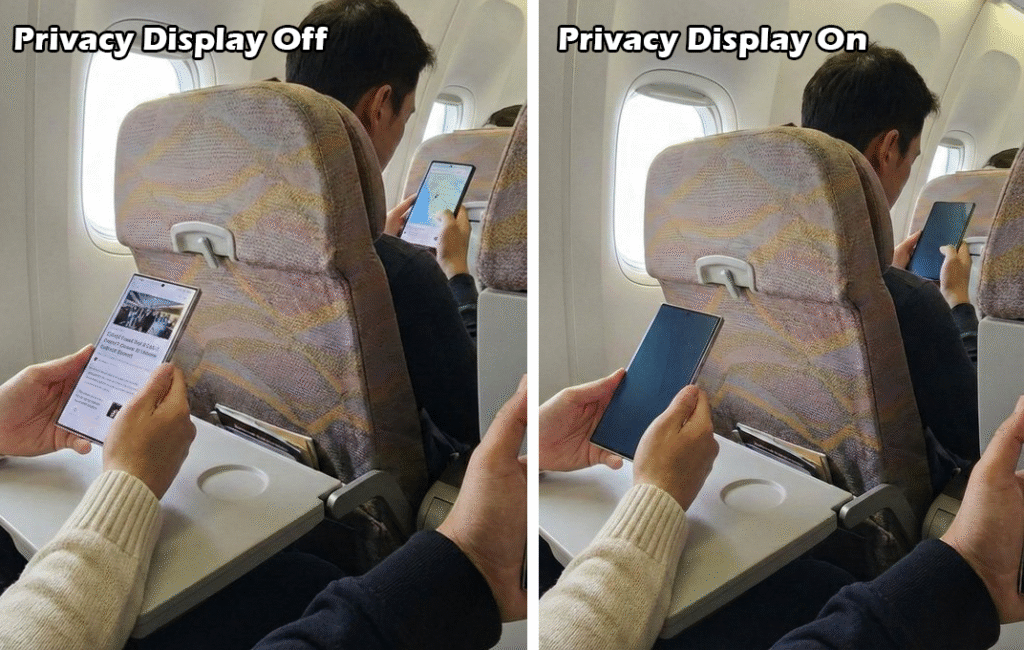 The most exciting confirmed feature is Samsung’s new Privacy Display. Built directly into the UI and the 6.9-inch screen, this feature mimics a physical privacy screen protector. When activated, the display turns black to anyone looking at it from an off-angle, hiding your sensitive data from onlookers while remaining crystal clear to you.